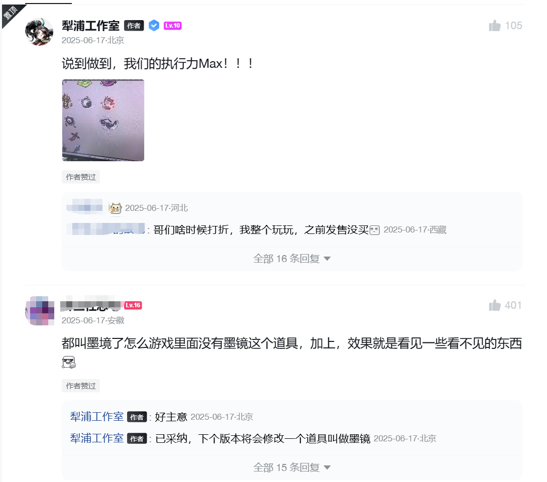 翻看游戏官方小黑盒主页,从2023年PV首曝、内测招募,2024年Demo开放、EA上线到2025年打赢复活赛、正式版上线,《墨境》可以说是盒友们看着长大的游戏。制作组和玩家的真心换真心,这是《墨境》的来时路。