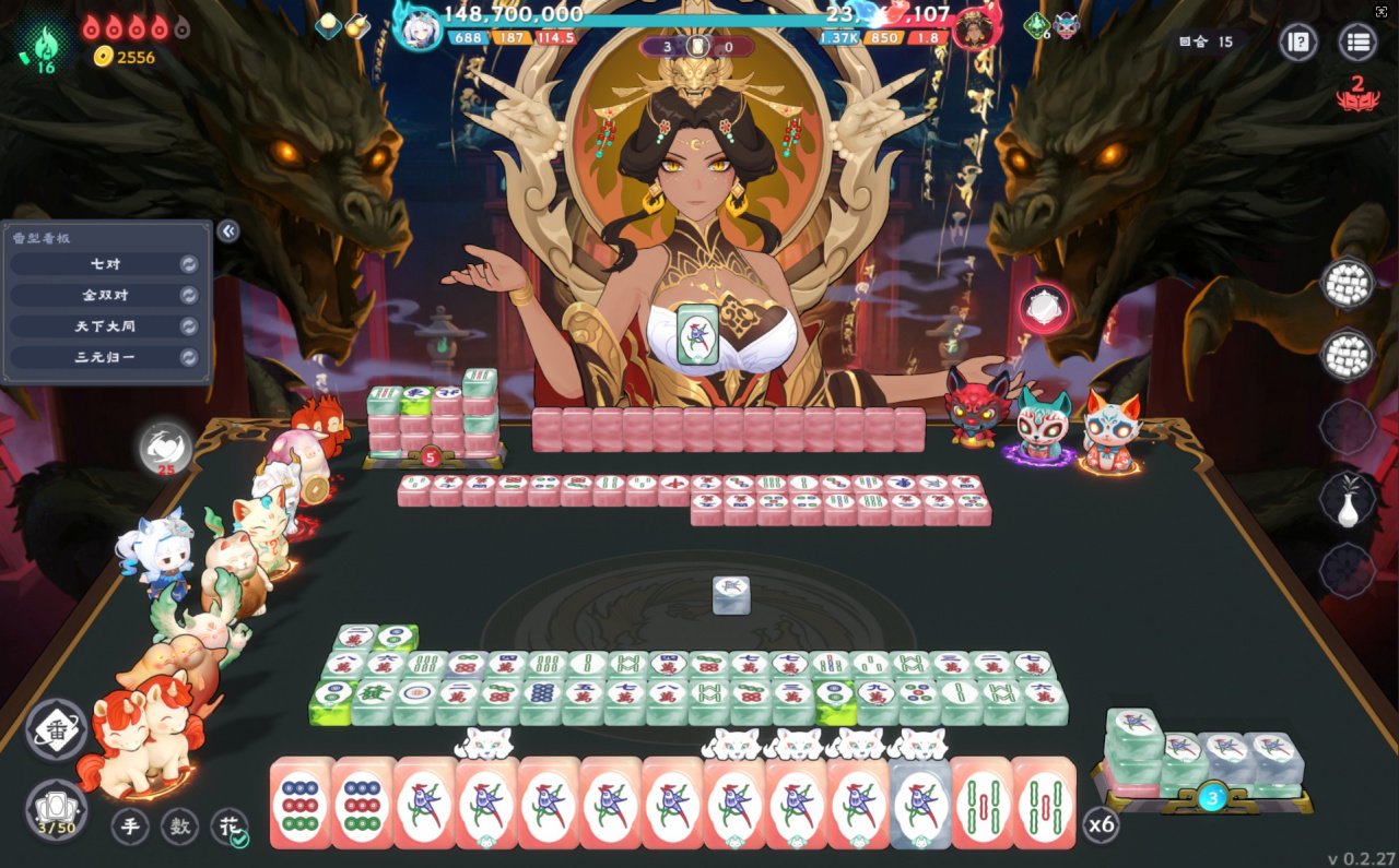 每個角色也不是簡單的立繪區分,無論是外型細節設計還是配音都把各自的性格體現出來,也很戳我,每個小姐姐都對應專屬流派和技能:有的擅長萬牌清一色,有的專長順子九蓮寶燈,還有的主打七小對套路,更有誇張的天下大同(全都一張牌)(馬面yyds)。