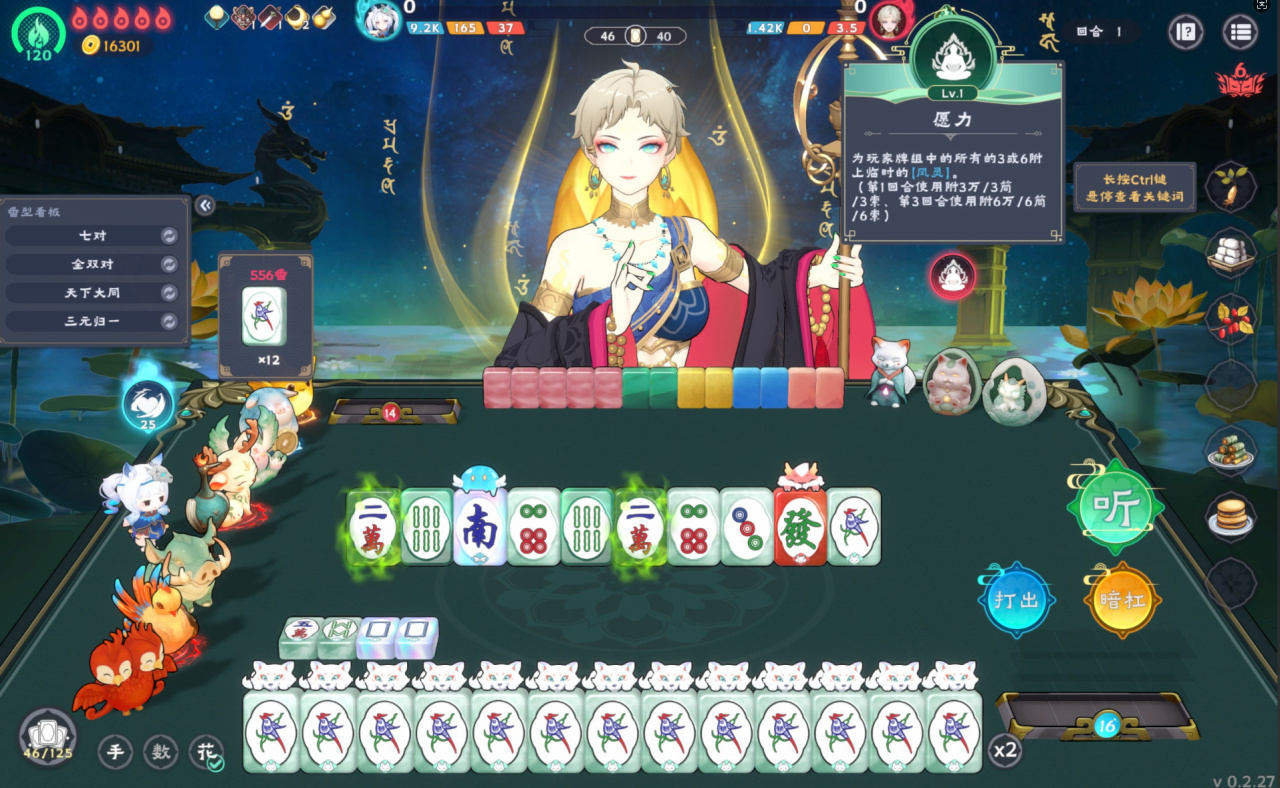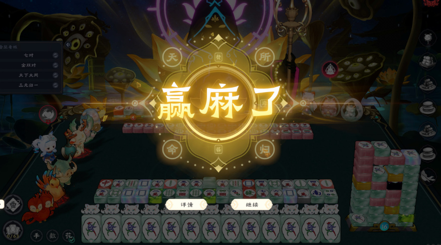遊戲的UI和提示設計得相當不錯,你可以在還能隨時查看牌型教程,連聽牌後剩幾張胡牌、能得多少番都標得清清楚楚,新手照着玩兩局就上手。