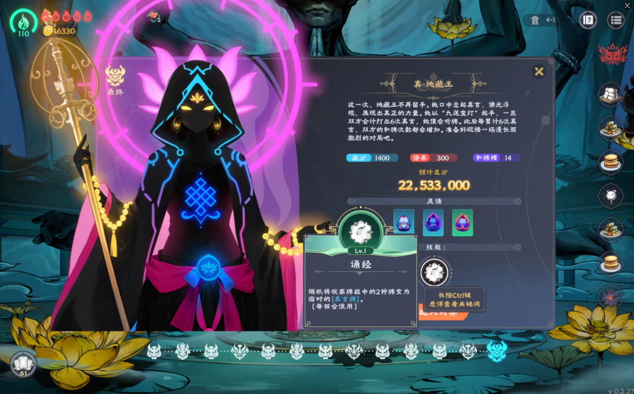 遊戲也是之前更新了新角色/新牌友地藏王,我也是在衝難度6的時候,有幸遇見了一把,真的有點猛,差點翻車。