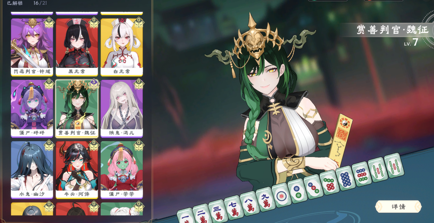 以前看地府題材的各種作品,總覺得黑白無常地府的各種角色凶神惡煞的,結果在這個遊戲裏地府全面娘化變成二次元美少女,大家每天什麼都不幹,就是打麻將!!21位角色全是2D立繪+3D建模結合,從御姐到萌妹一應俱全。
