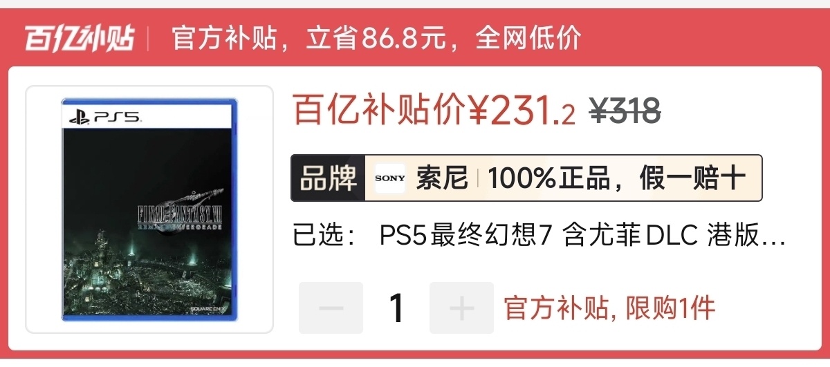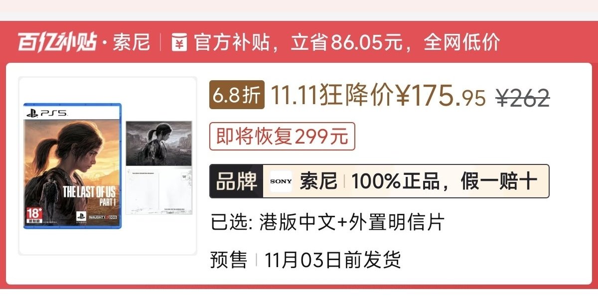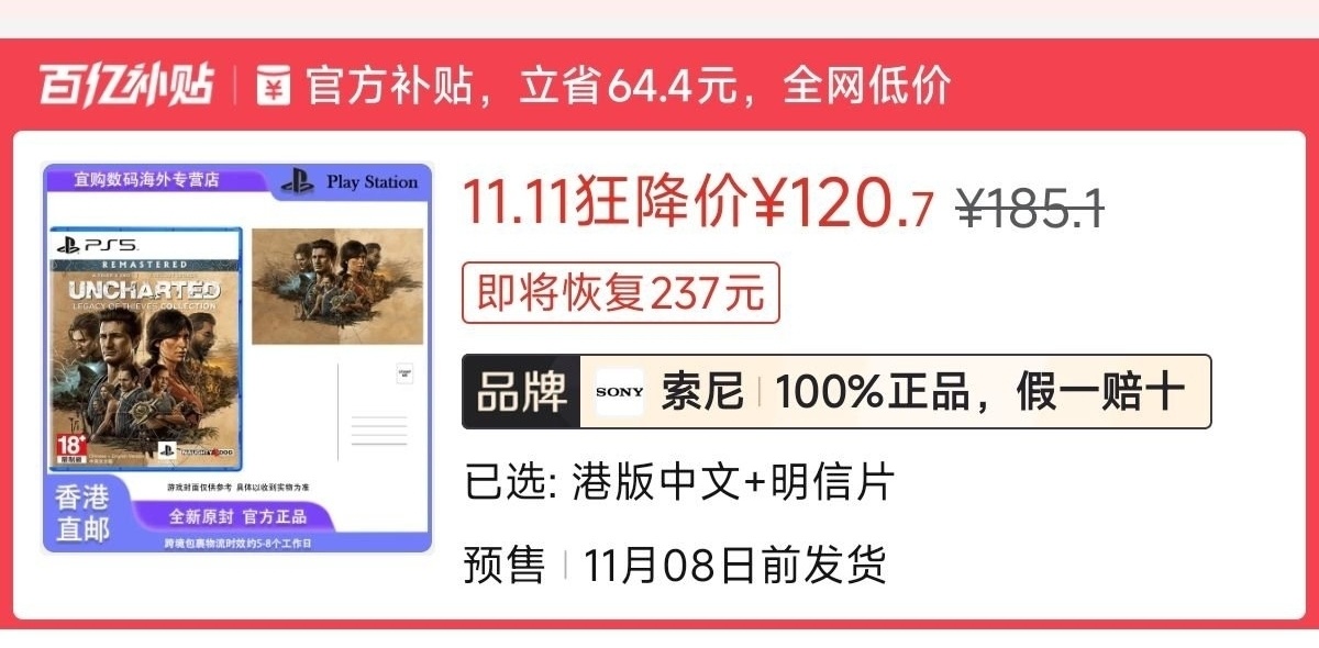 本周ps5版新史低232元(v3券),没有v3可以243(-30积分券)