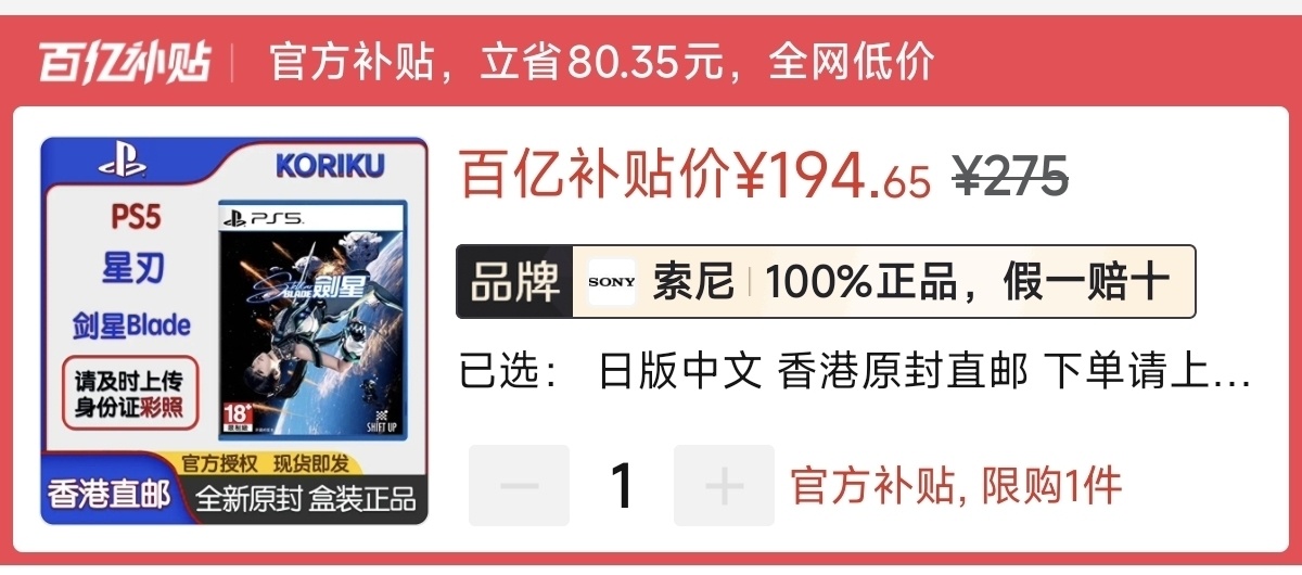 本周好价194元(v3券),没有v3可以199元(-30积分券),史低日版193元(消费券)