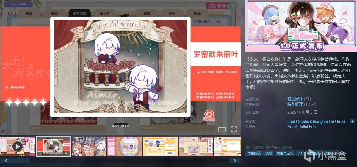 《太太!我喜欢你!》是一款同人女模拟经营游戏。你将会扮演一名同人爱好者,为你热爱的CP创作。你可以在商店购买或自制谷子,摆阵、扎包、布置你的海景房。还能创作同人小说、出同人本参加漫展,积累粉丝、成为大手;和四位性格迥异的同担一起,开始属于你的同人圈故事吧!