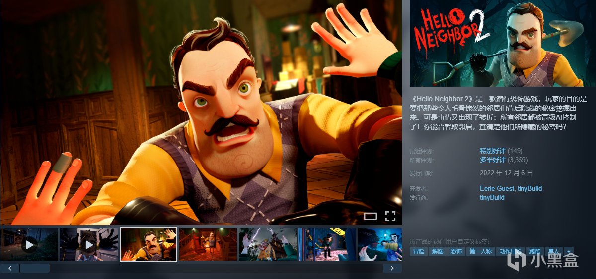 《Hello Neighbor 2》是一款潜行恐怖游戏,玩家的目的是要把那些令人毛骨悚然的邻居们背后隐藏的秘密挖掘出来。可是事情又出现了转折:所有邻居都被高级AI控制了!你能否智取邻居,查清楚他们所隐藏的秘密吗?