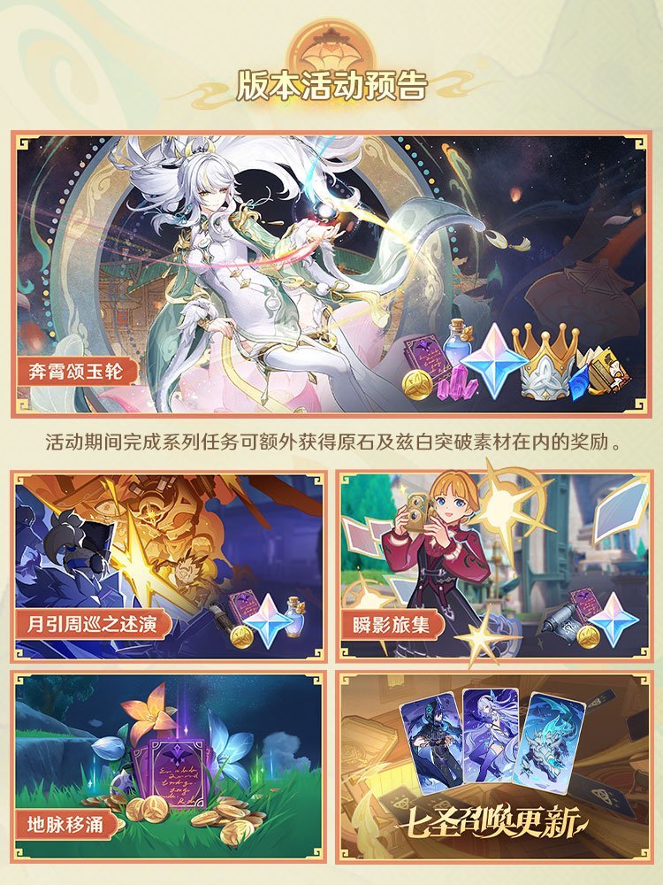 原神月之四前瞻總結 贈送20抽 皮膚送送送 旅行者加強 劇情回顧等