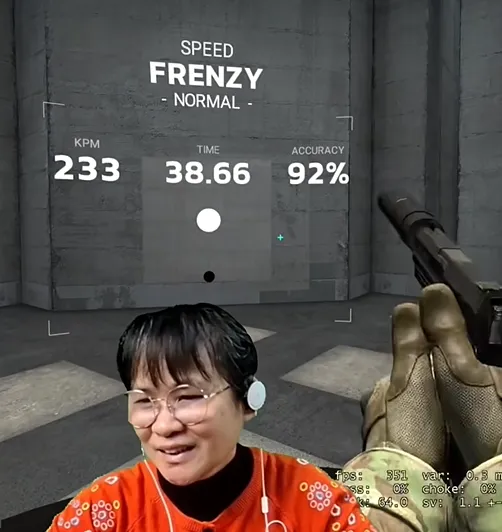 那么问题来了,这位阿姨游戏打得怎么样呢?我只能说,可以完虐90%的FPS玩家了。