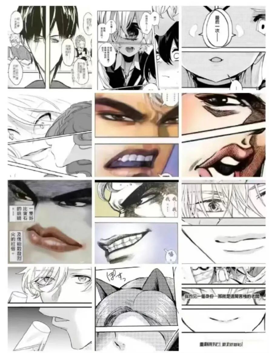 分镜是漫画的灵魂,眼口分镜就是在召唤邪神,再感人的剧情,也会在它们面前分崩离析。一般来说,漫画基础课的前三节,就会有人告诉你,绝对不要画这东西,可纵观漫画史,你依旧会发现,无数大师对此等艺术如此痴迷。