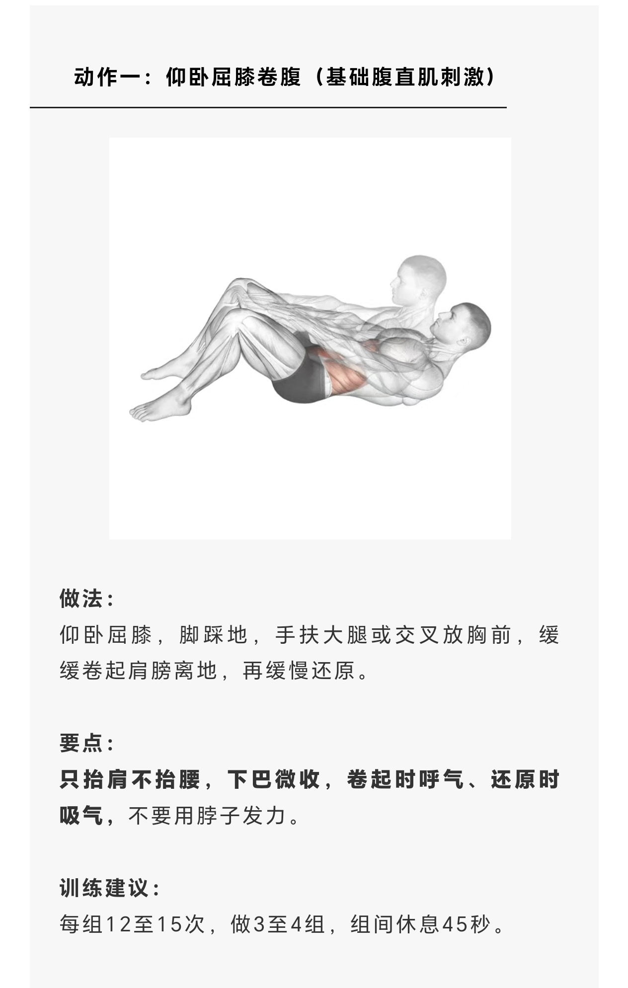 新手階段只需要把卷腹做對、核心收緊做紮實,就已經領先很多人了。