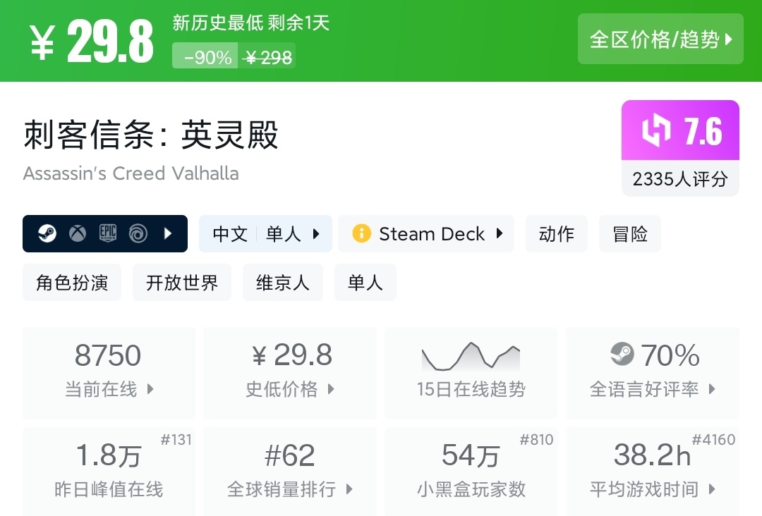 38款一折新史低佳作