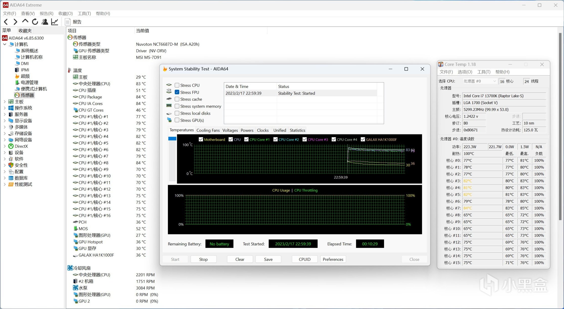 九州风神冰堡垒青春版的效能也相当不错,在5.3Ghz下,烤机温度83°,日常压制13700K是没问题的。