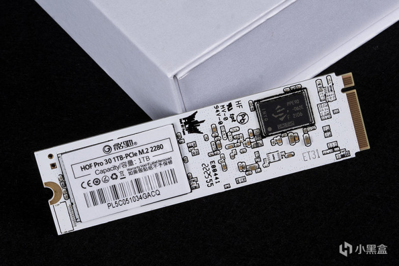 影驰名人堂HOF PRO 30 PCle 4.0 1TB采用标准2280规格,白色PCB十分抢眼。正中央位置为PHISON群联PS5016-E16主控芯片,作为群联推出的全球首款消费级PCIe Gen4x4 NVMe主控芯片,28nm制造工艺,双核Cortex-R5处理器,8个NAND通道和32个CE,内部集成智能温控和多种数据纠错机制。