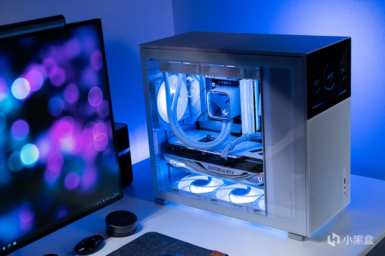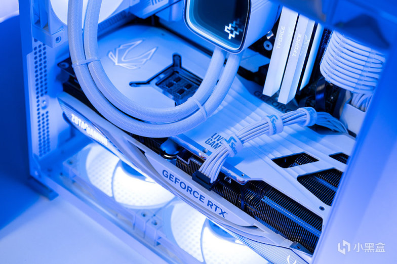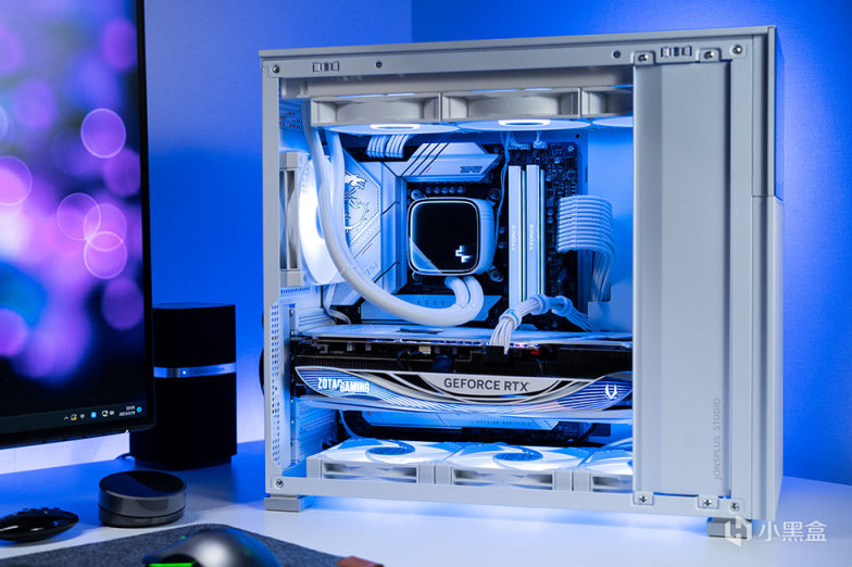 搭配九州风扇冰堡垒360青春版的镜面效果炫酷。显卡底部和尾部均加装了机箱风扇,以便取得更好的散热效果。