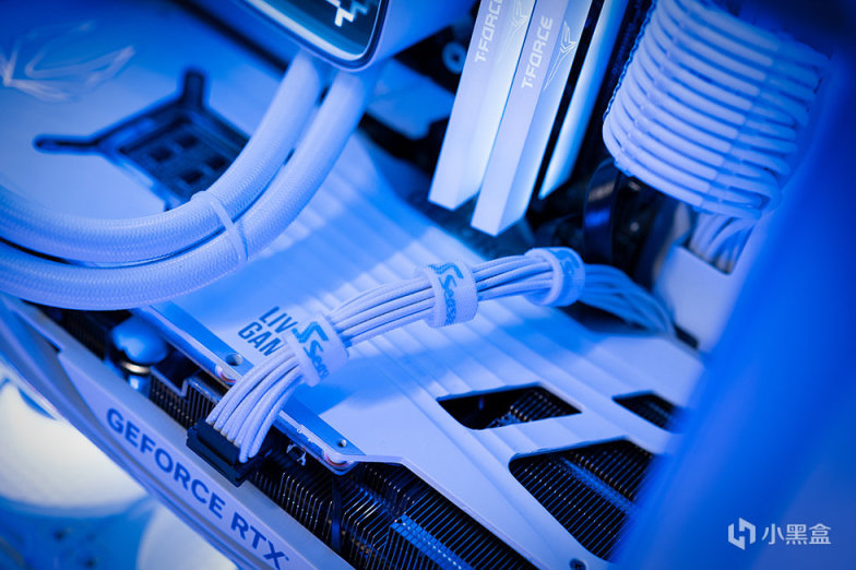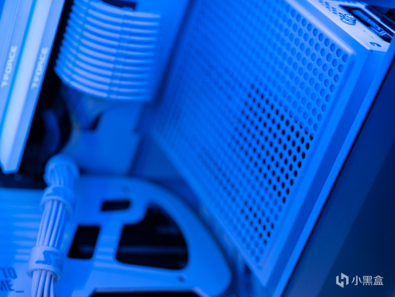 这次电源搭配使用了海韵GX1000搭配原厂的90度L型12VHPWR压纹模组线 ,轻松解决12VHPWR显卡供电线接口线缆弯折问题,安全,高效,美观。