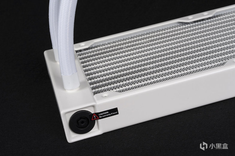 冰堡垒360青春版的冷排尺寸为402*120*27mm,整体白色喷涂,整体表面加入多层喷涂工艺,质感细腻,水管长度410mm,外部有蛇皮网包裹,采用进口的EPDM高密封材料。