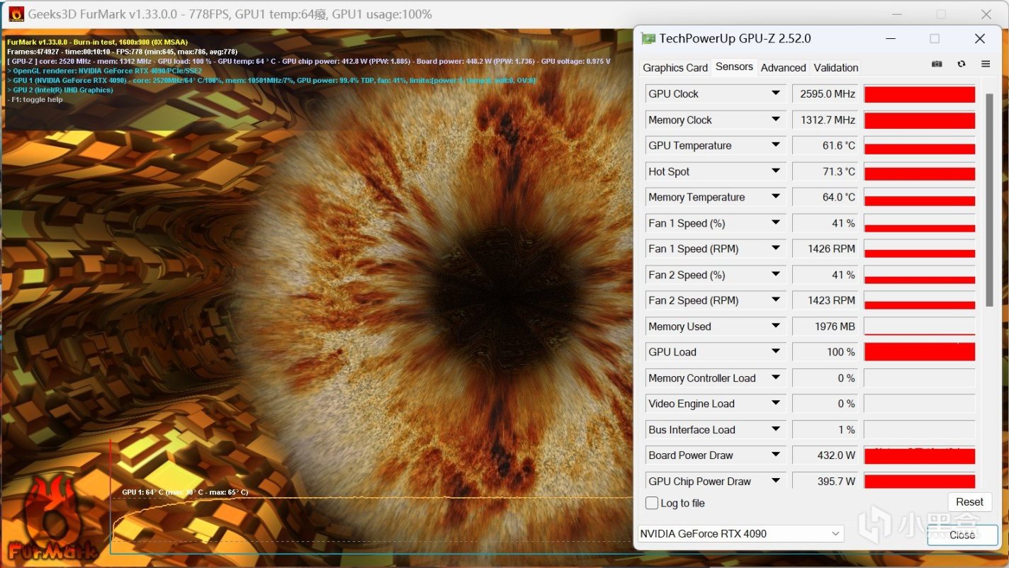 显卡满载测试:Furmark 10分钟,温度61.6℃。