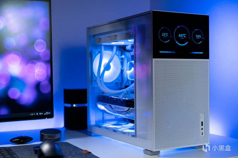 白色整机搭配单一幽蓝的灯效,颜值方面D41还是很能打的,很喜欢方正外观,整机各角度LOOK。