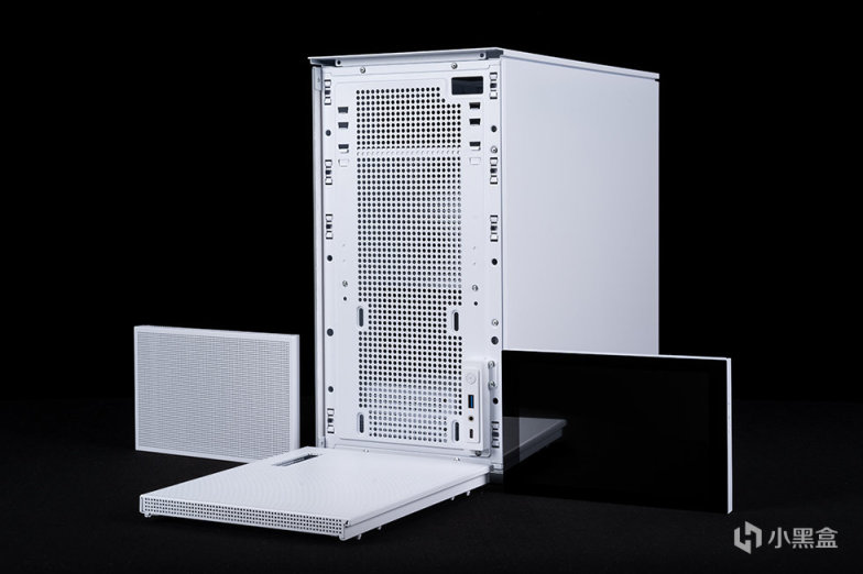 正面上下两个模块化组建:副屏和mesh面板都是可以拆卸更换的,默认自带了一块mesh上面板,可将屏幕更换成mesh面板。
