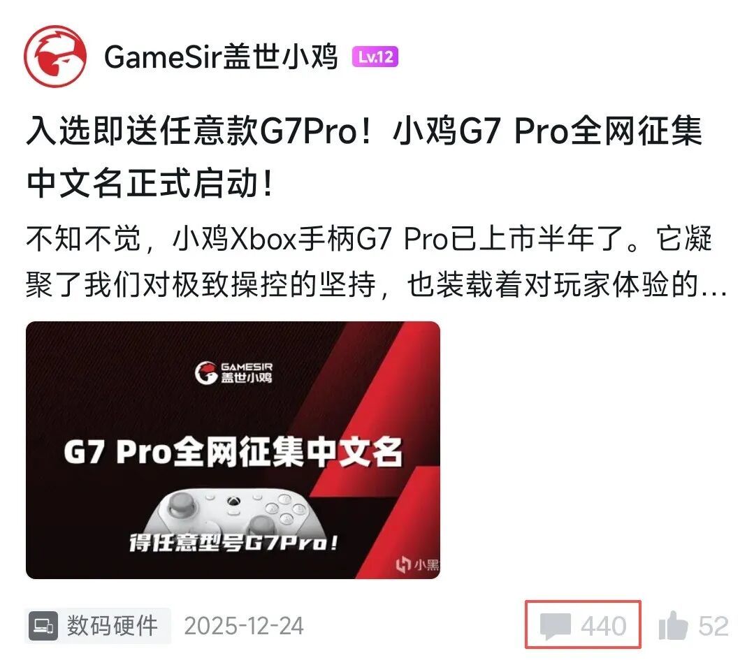 最终入选名字的创作者,将获赠G7 Pro手柄任意型号1台!