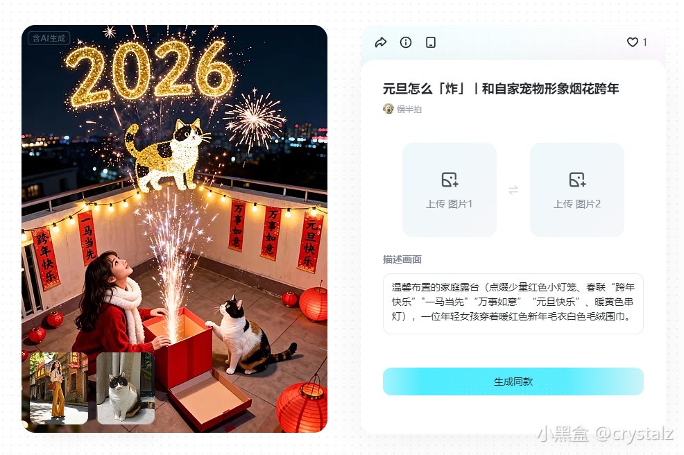 涵盖花式节日、商品营销、人像写真、趣味萌宠、表情包、创意合拍等 N 种玩法,紧跟热门爆款。