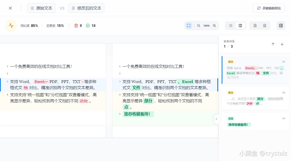 一个免费高效的在线文档对比工具!