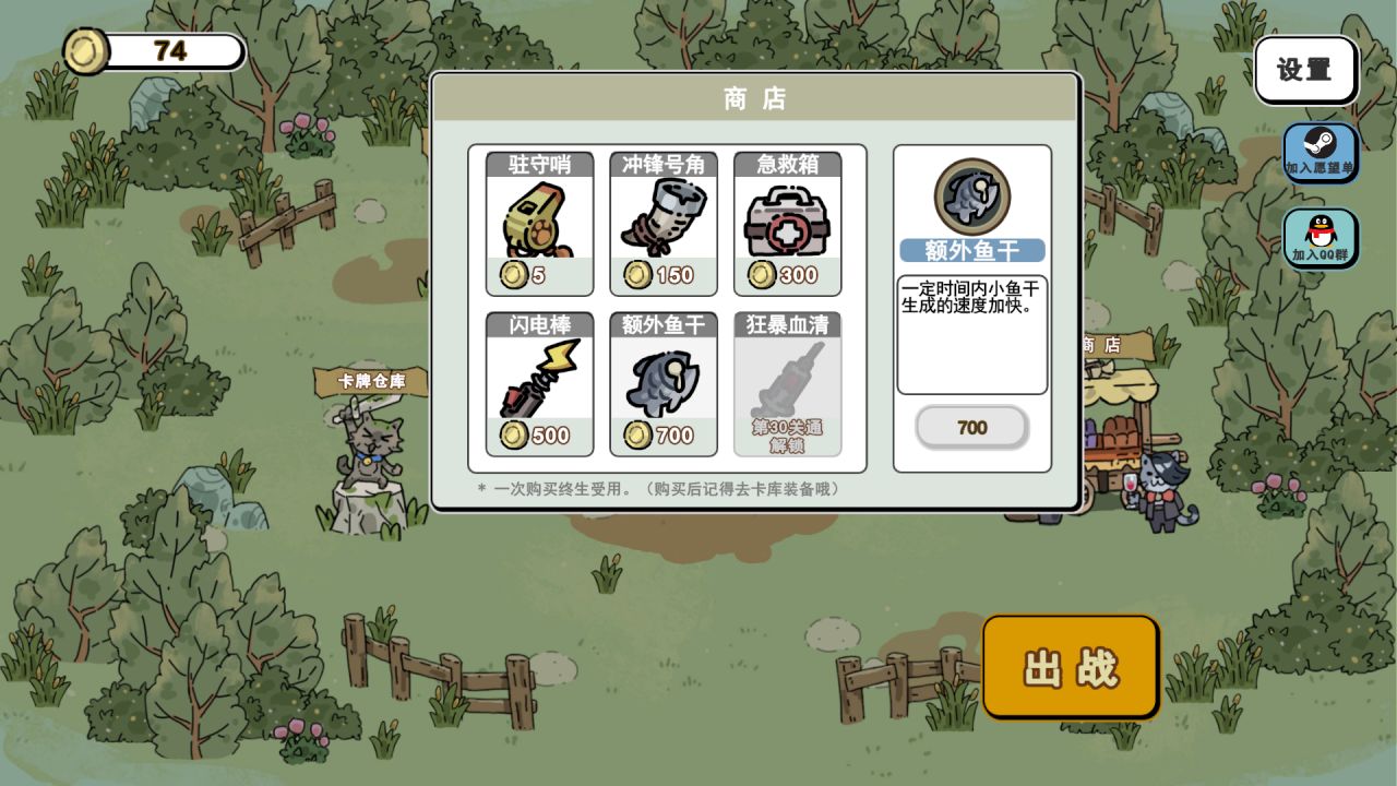 实在不行还有商店可以购买各种道具,有加速增加鱼干、召唤闪电攻击、治疗喵咪血量等物品,非常实用。