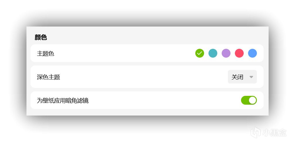 主题颜色(支持跟随系统或手动选择);