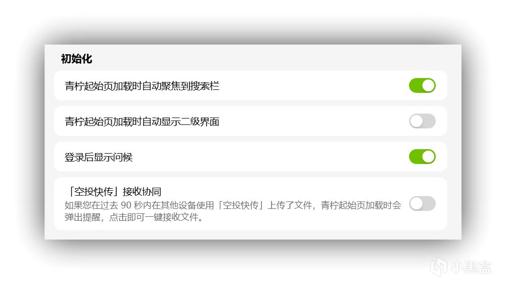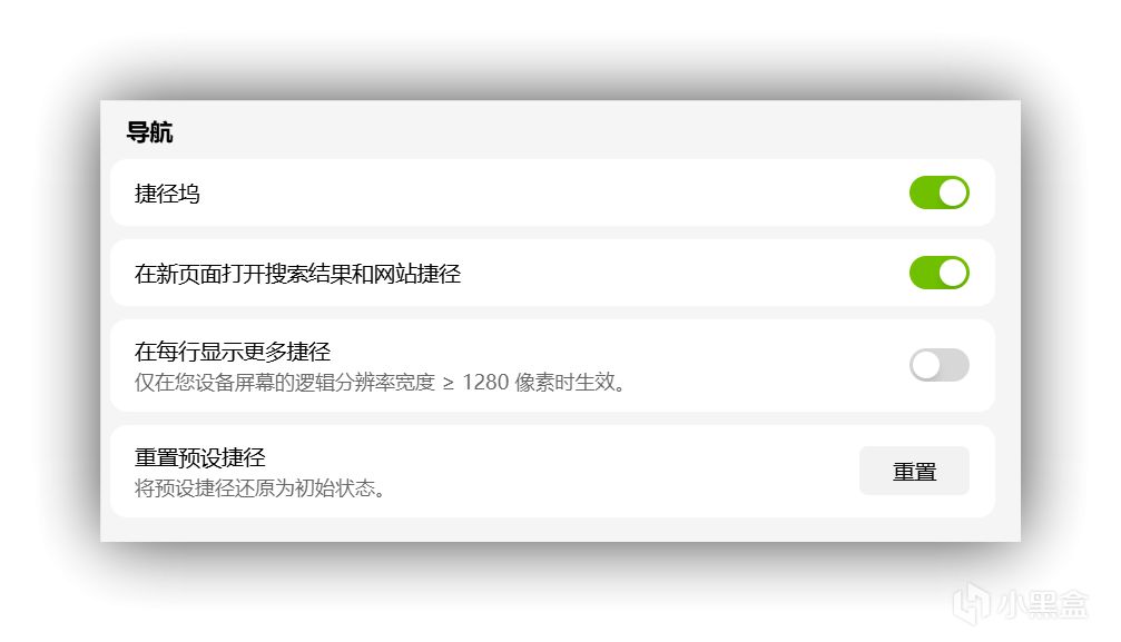 搜索建议开关、快捷链接数量、便签位置等。