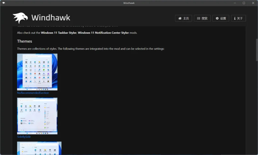 美化開始菜單:打開運行「Windhawk」模塊市場,安裝上 Windows 11 Start Menu Styler 模塊。這樣默認也提供了一些開始菜單美化的配置樣式。