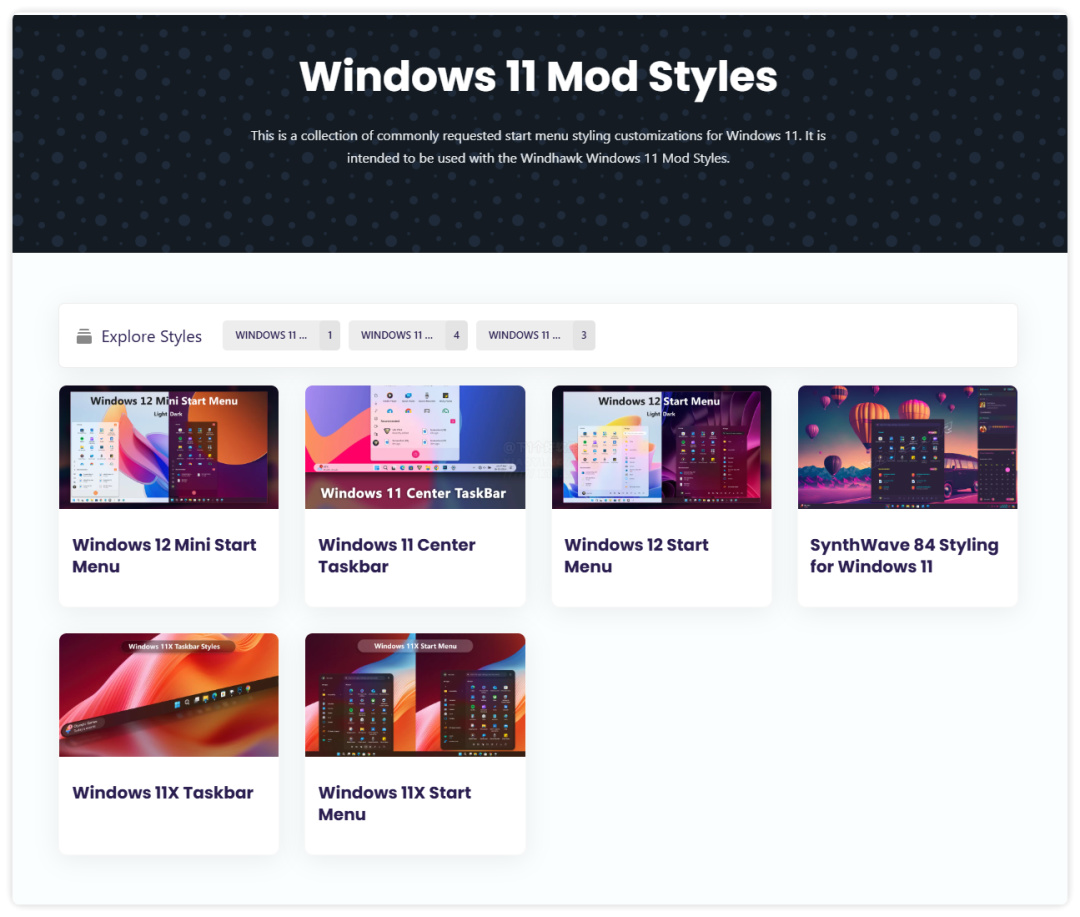 通過「Windhawk」模塊市場裏面的 Windows 11 Start Menu Styler(開始菜單) 和 Windows 11 Taskbar Styler(任務欄) 模塊,以及美化配置文件來模仿 Win12 的 UI 樣式。