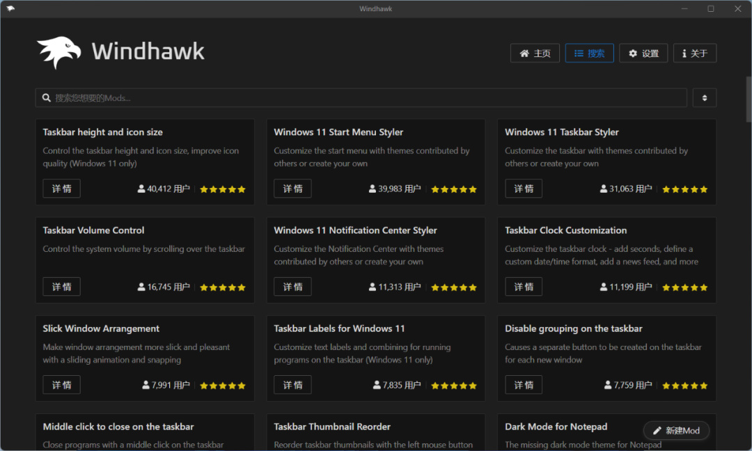 如果你喜歡這個 Win12 曝光的任務欄設計,現在也可以通過第三方工具來實現了,這裏需要採用這款「Windhawk」Win11 / Win10 自定義修改軟件,它採用了 “模塊” 化,你也可以理解爲插件,通過安裝不同的模塊來實現一些功能。