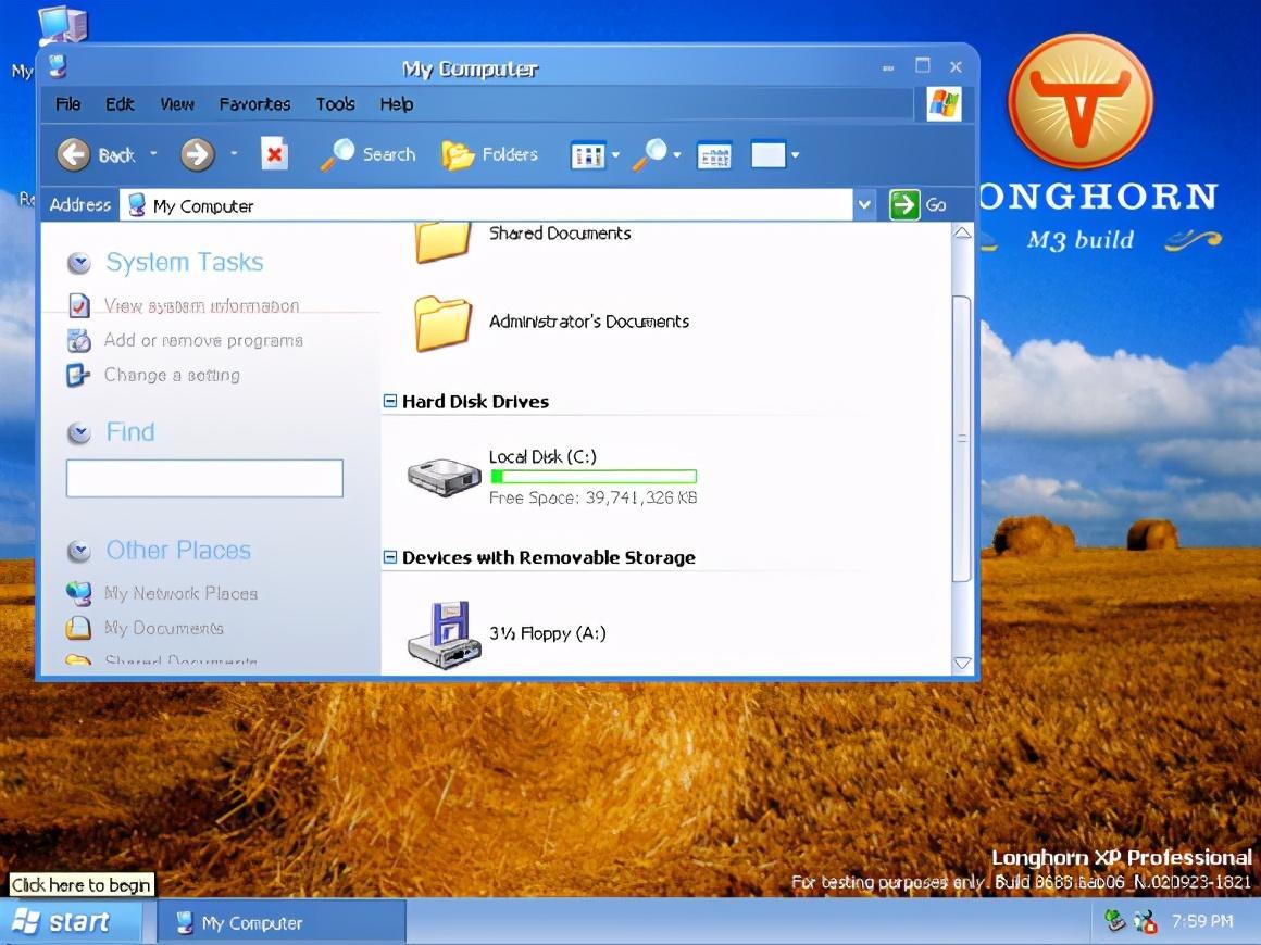 最后还是给大家找到了 Windows LongHorn 3683 / 4074 两个版本,有兴趣的可以下载后用虚拟机玩玩。