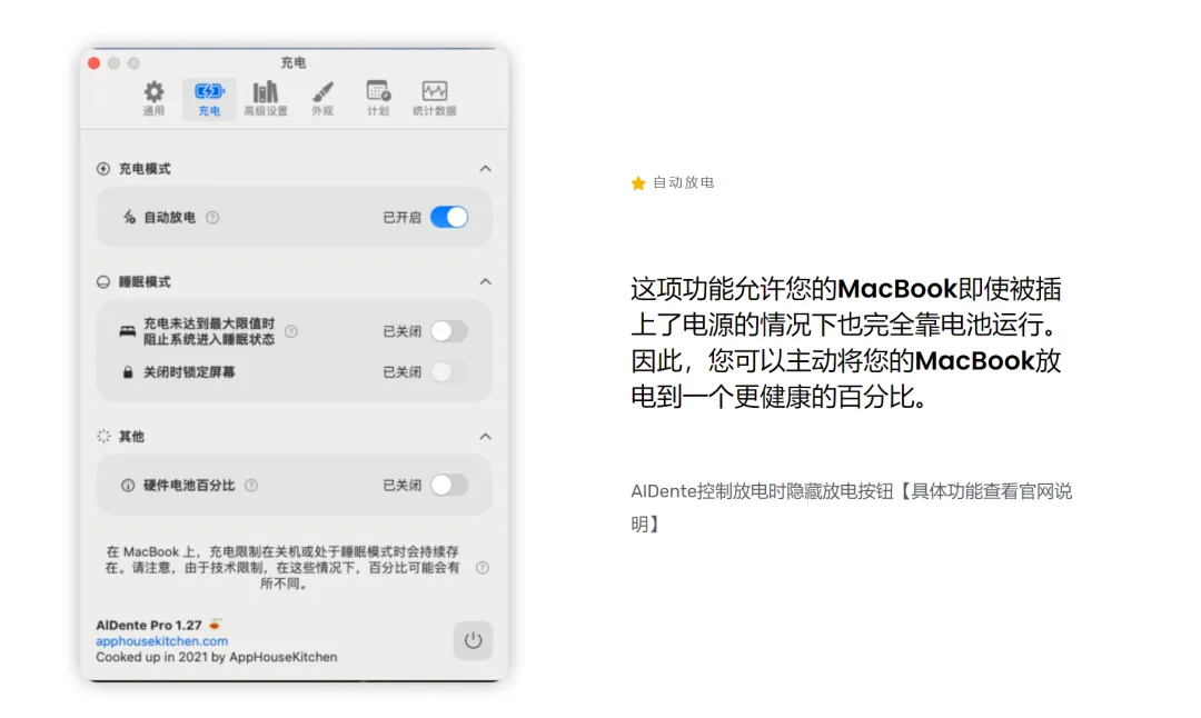 让MacBook的电脑续航更长?该怎么更全面的了解MacBook电池的健康状况?那么你一定不可缺少它-AlDente,使用AlDente可以帮助你保护电池健康,延长电池寿命。