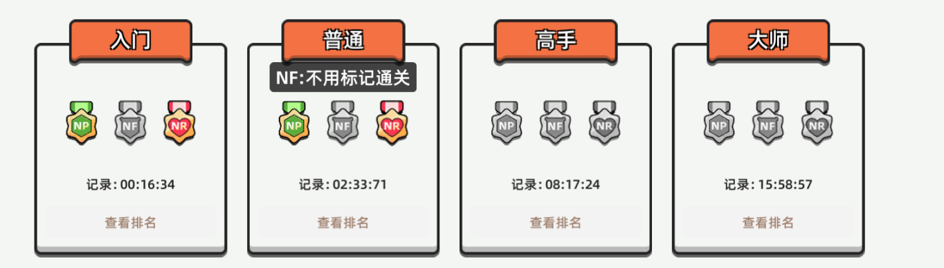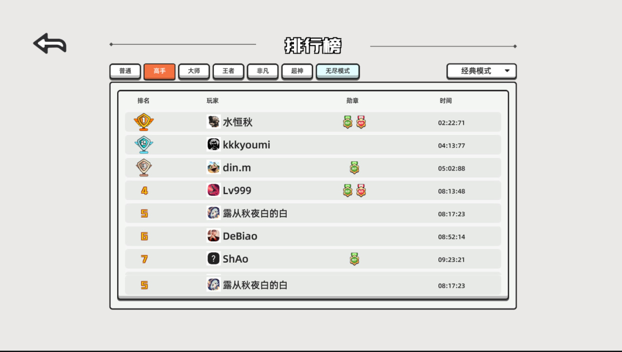 这里不仅可以看到玩家的排名以及用时,还能够看到它的小奖章。