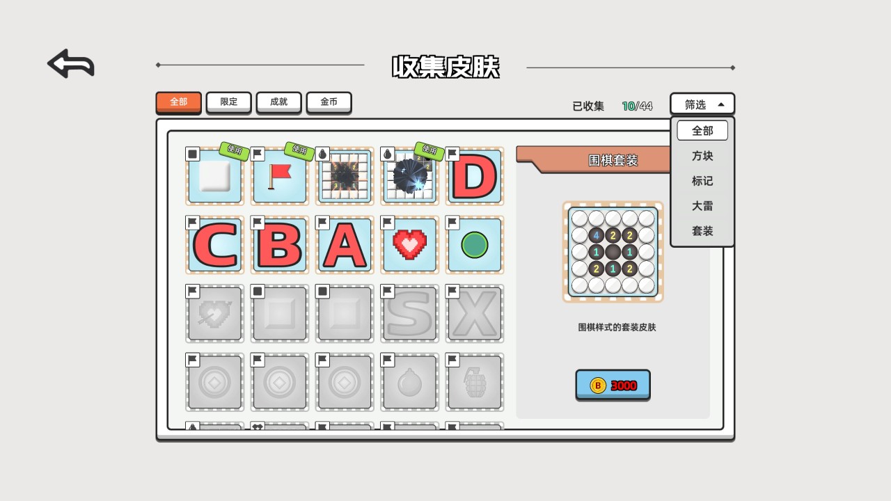 此外呢,游戏还有皮肤收集要素,完成成就可以解锁,或者金币直接购买。