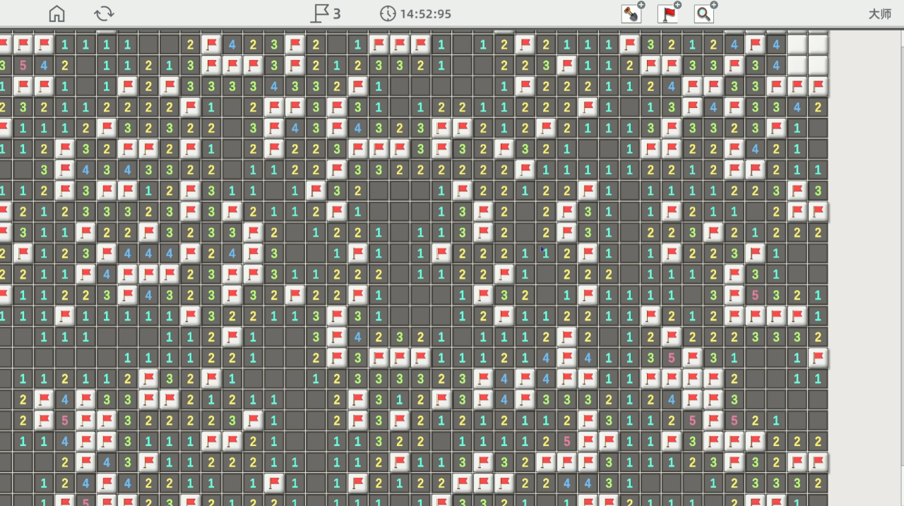 例如在扫大雷的大师难度,我需要在25×40的格子内,排查出210颗雷,当我完成挑战,成功排查全部地雷后,我发现居然用了将近16分钟。