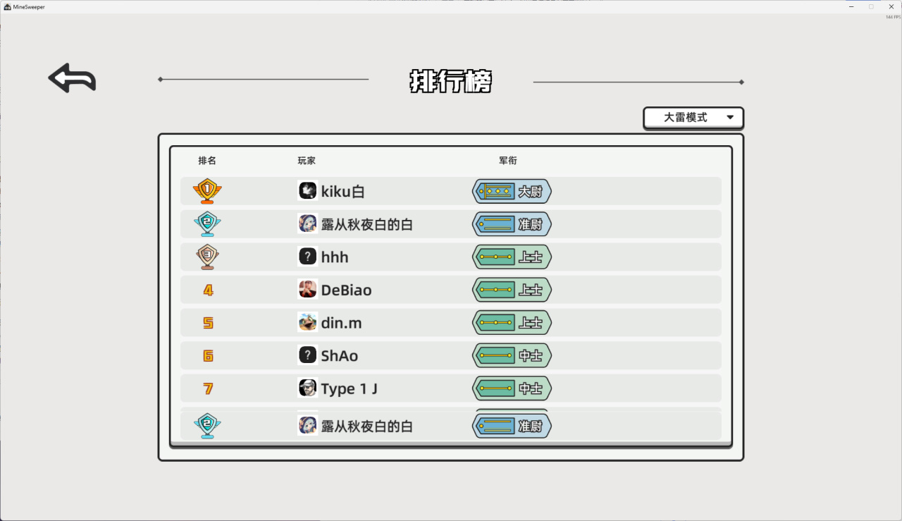 扫雷伴随着初级到高级的难度划分,并且还能够记录下自己的通关时长,无论是成功通关高难度扫雷,还是进一步打破扫雷的纪录,都给玩家带来了无比的成就感与满足感。