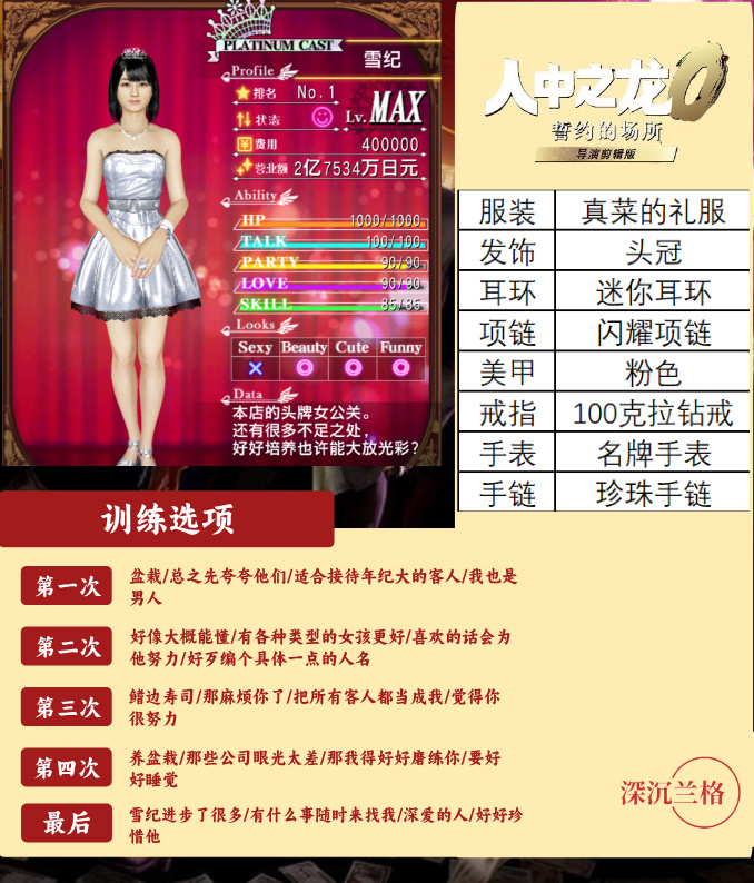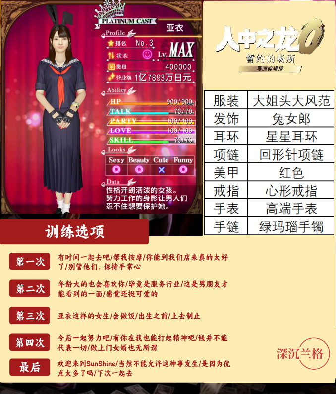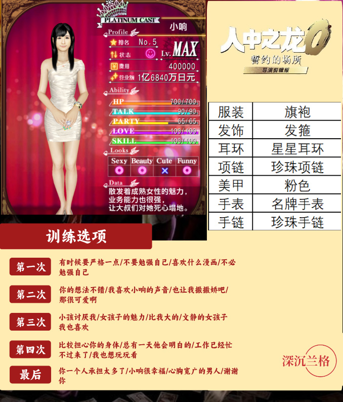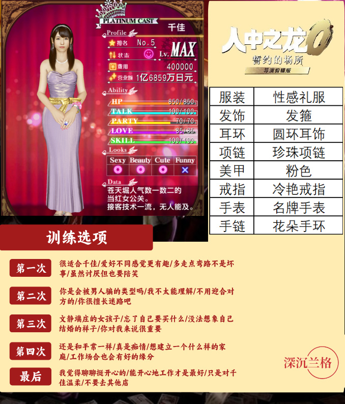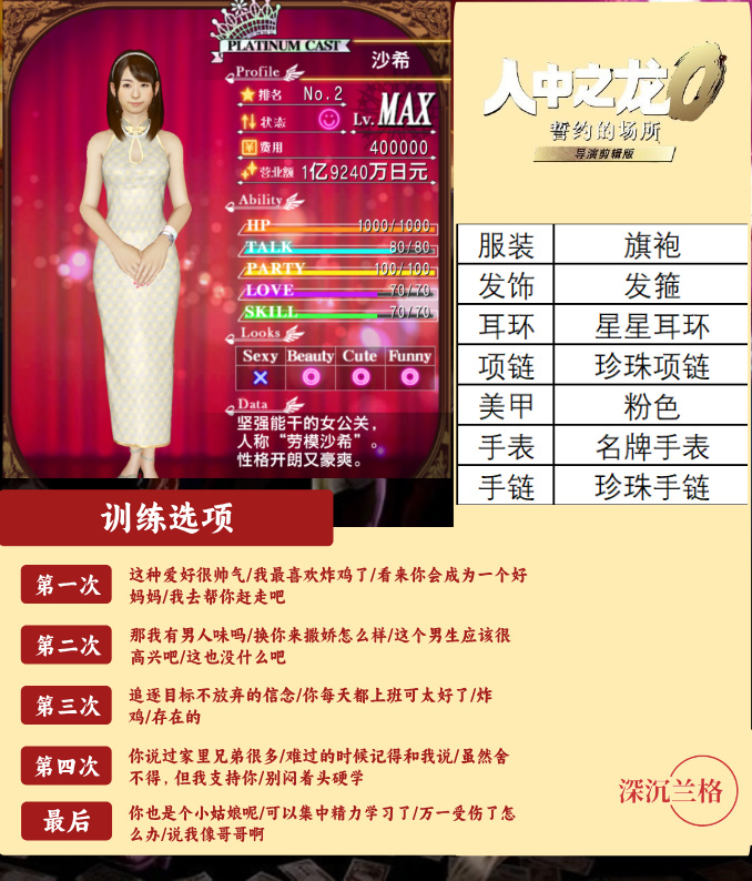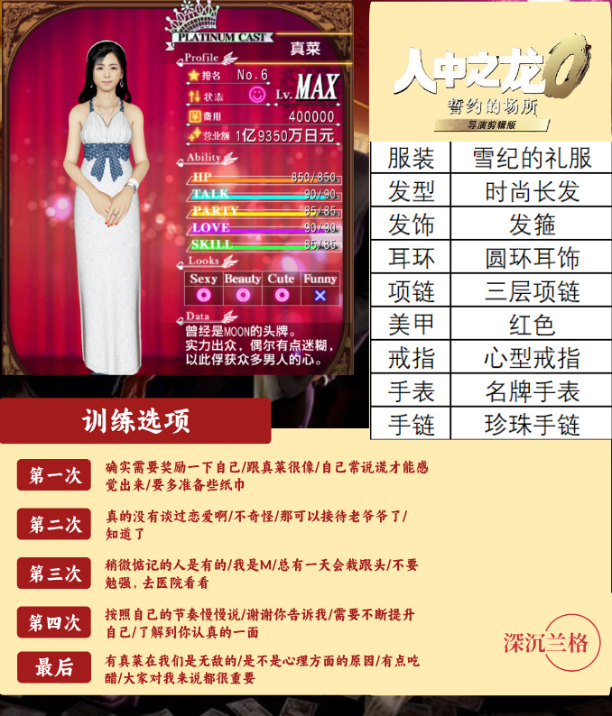 圖8-13(6位白金小姐訓練選項及穿着搭配參考)