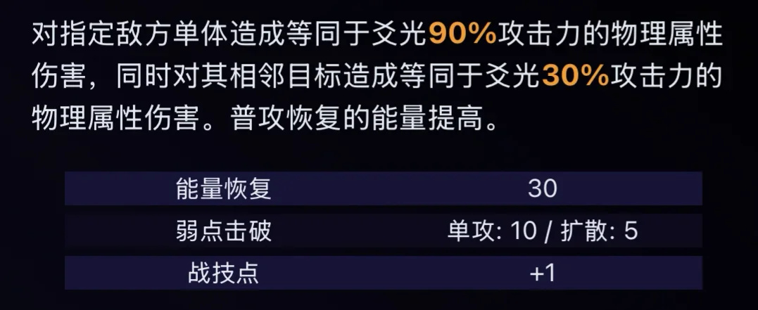 使用秘技后,使下一次战斗开始时自动触发1次战技,此次触发不消耗战技点。爻光在队伍中时,击碎可破坏物时立刻获得【红包】,每个地球周内最多获得8个。