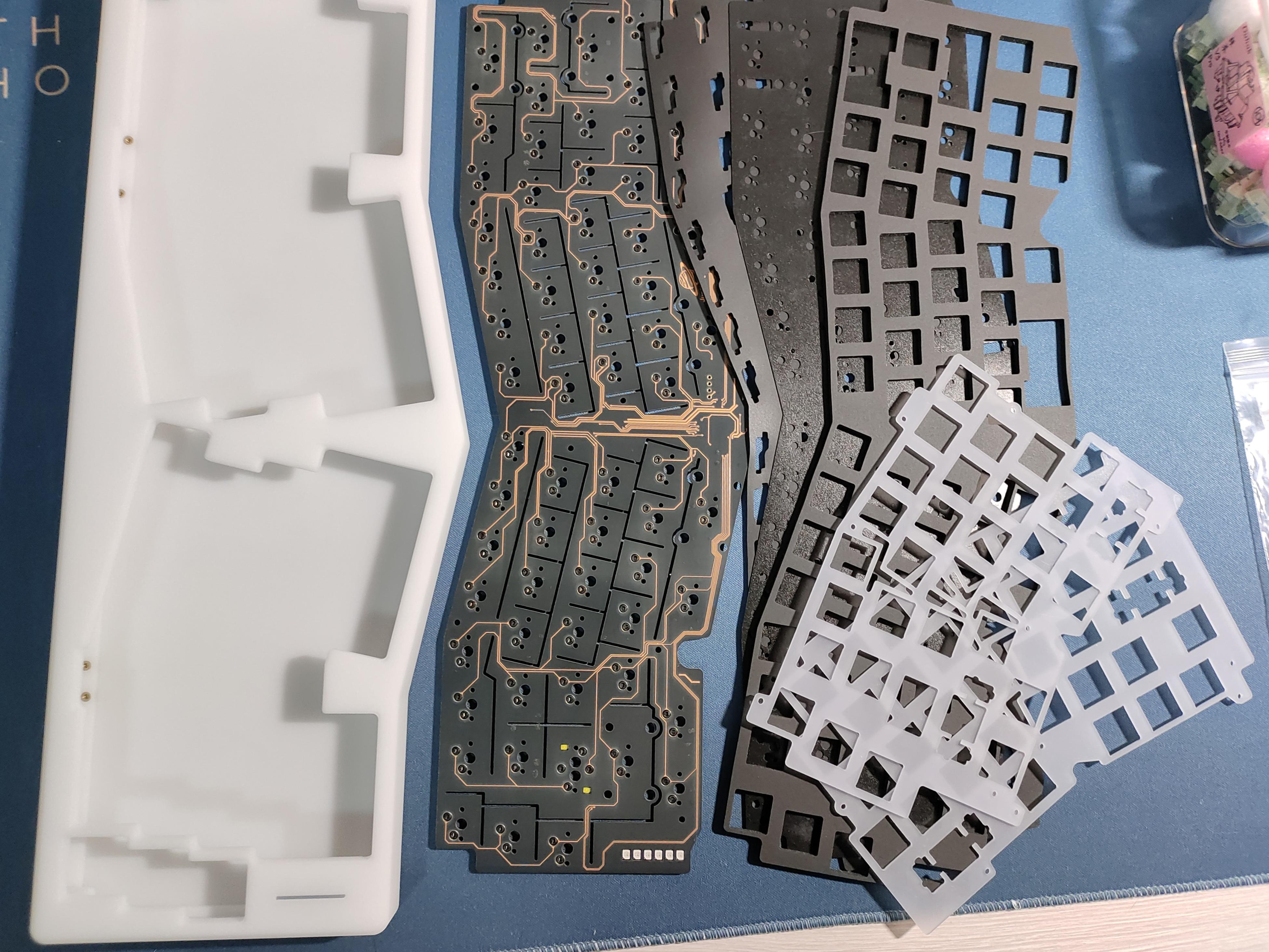東西拿到手還是可以明顯感覺到是亞克力材質,重量上要比鋁的輕上不少。因爲cnc工藝鍵盤殼會比塑料的空隙更少,所以聲音要實很多,其鍵盤pcb的開槽完全模仿ow,配上同款八倍發泡軸下墊聲音上可以說十分的“HIFI”。這點上按照大家對聲音的喜好,因人而異。但在對比一些塑料量產鍵盤,這個聲音確實是吊打同價位產品了。