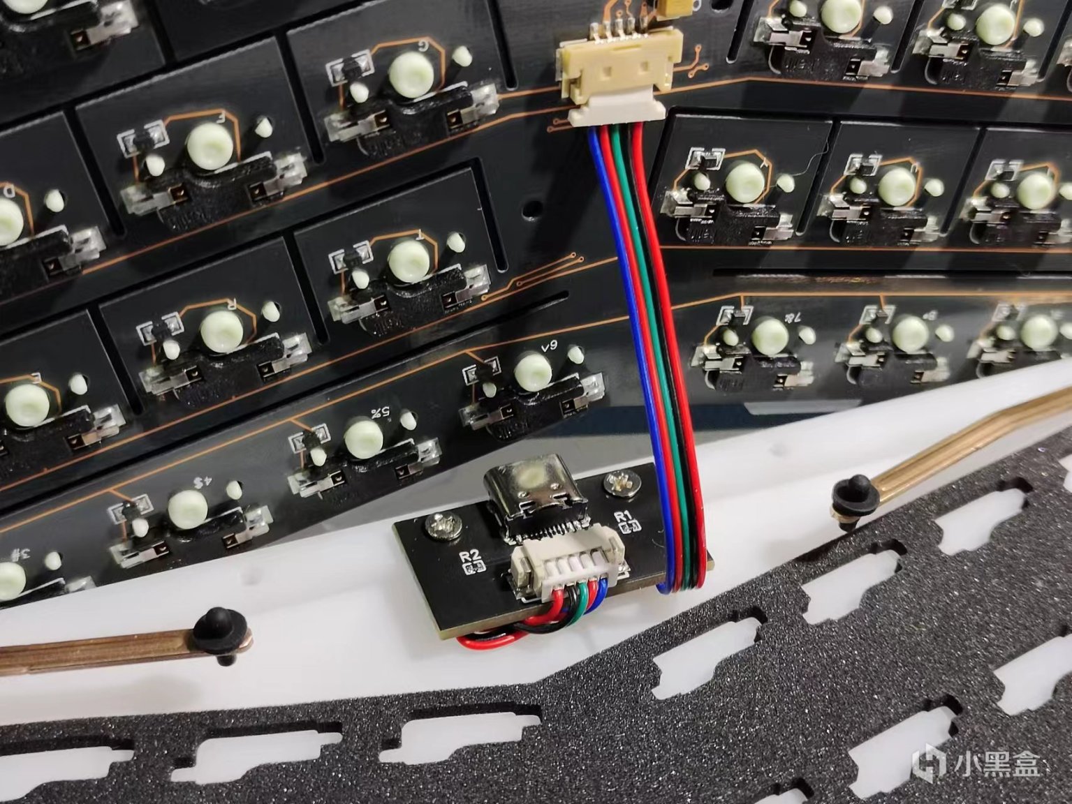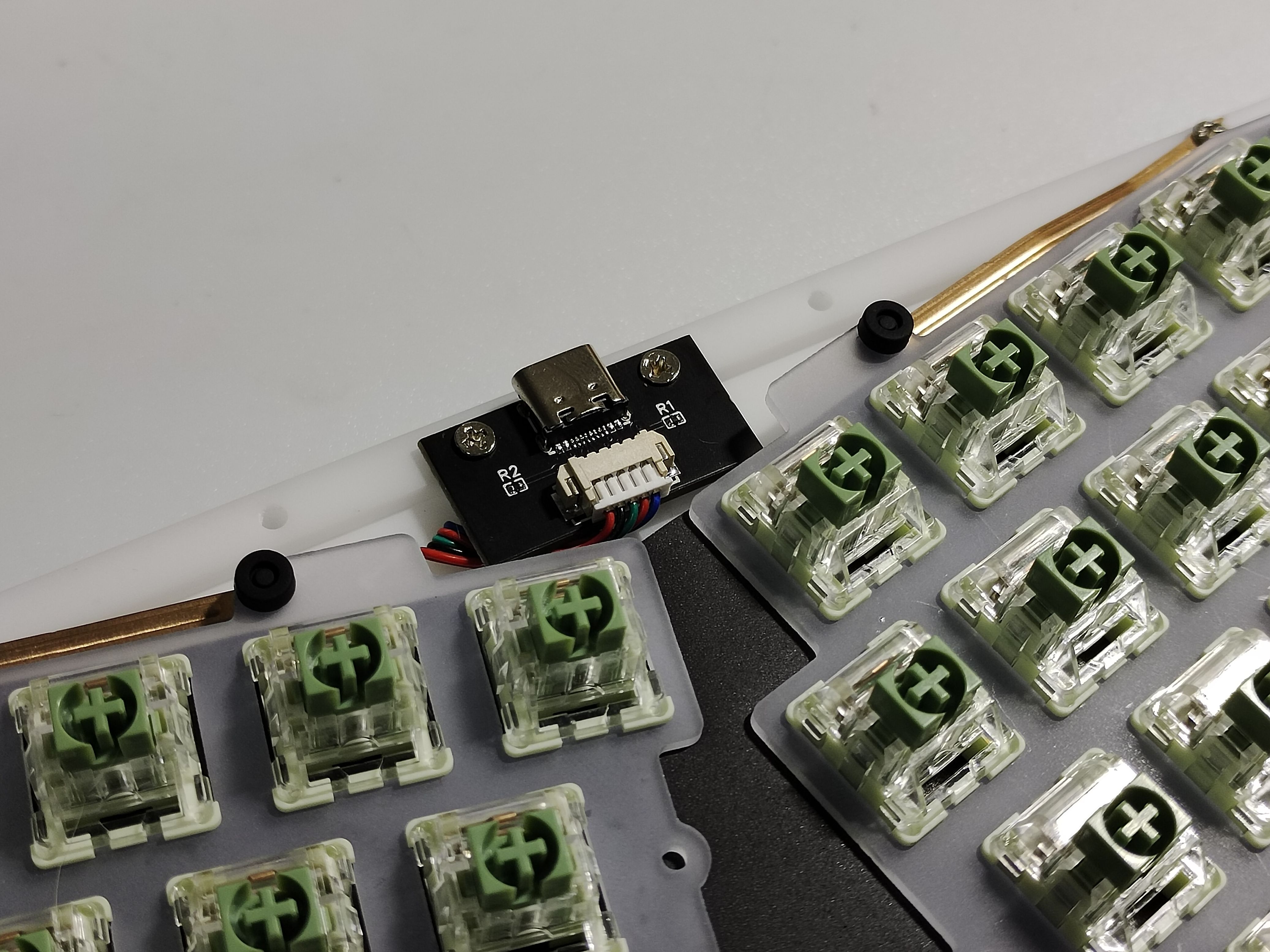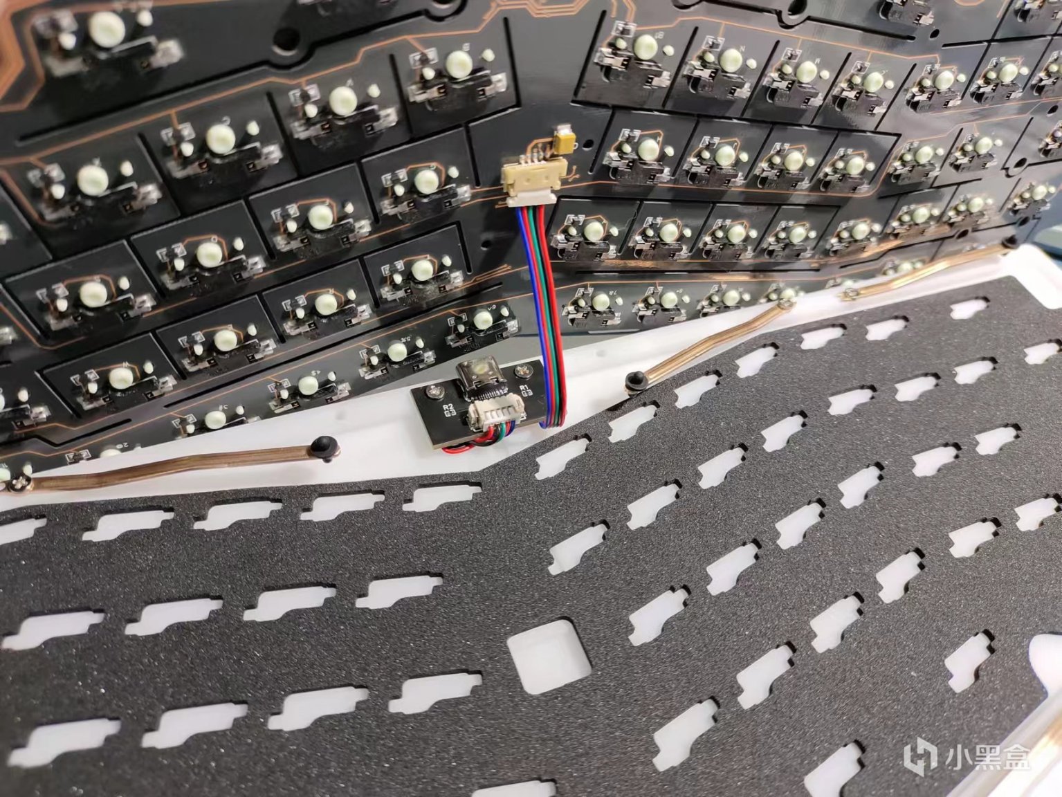 最後裝好通電,鍵盤的組裝就完成了。當然,這時候仍然有可能有問題,因爲內膽沒有限位所以有可能偏移導致卡鍵以及各種問題,這時候扒一扒內膽即可。