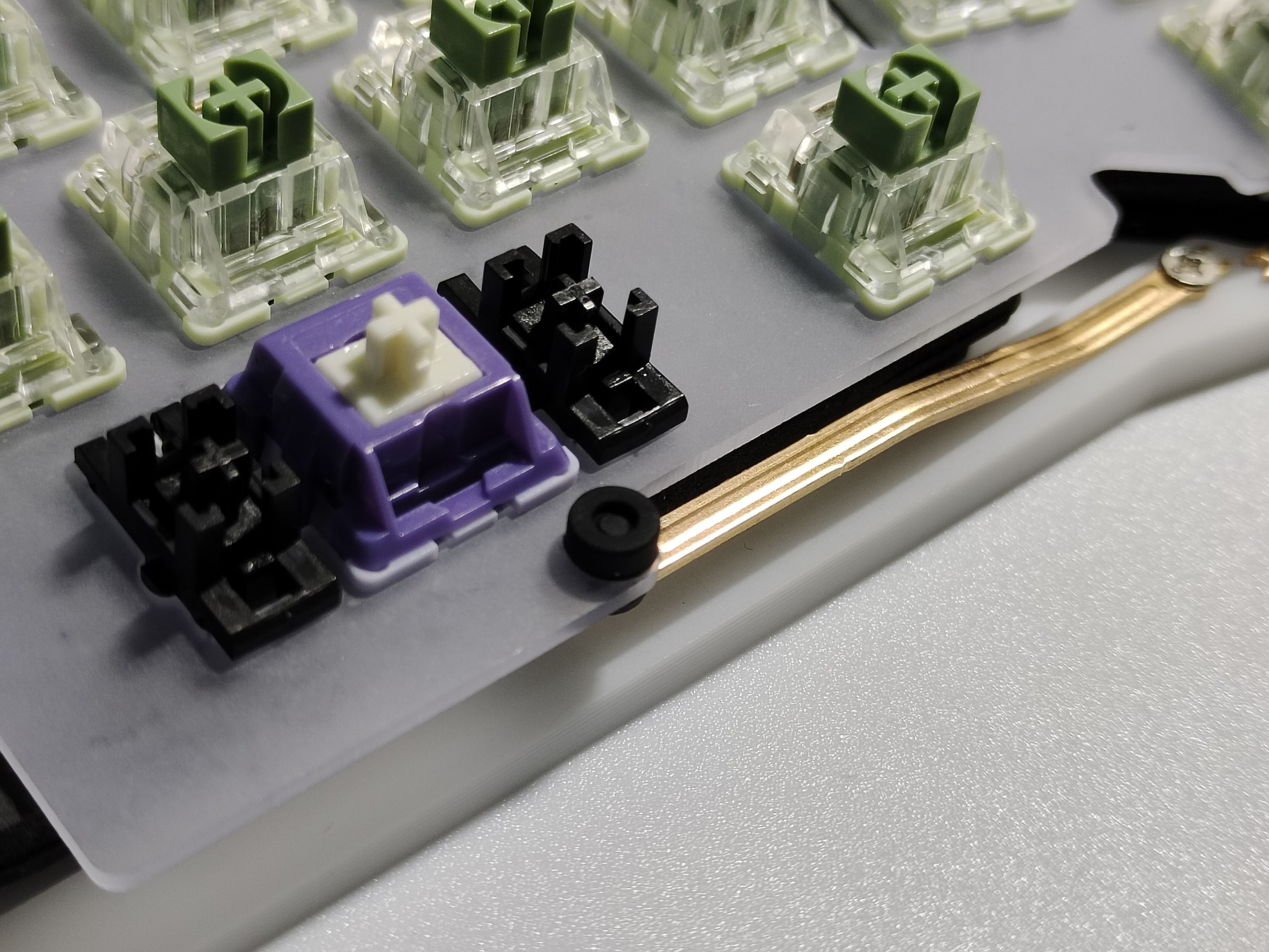 除此之外,這把鍵盤可以說是完全沒有內膽的限位,組裝之後內膽非常容易偏移,就會導致卡鍵。