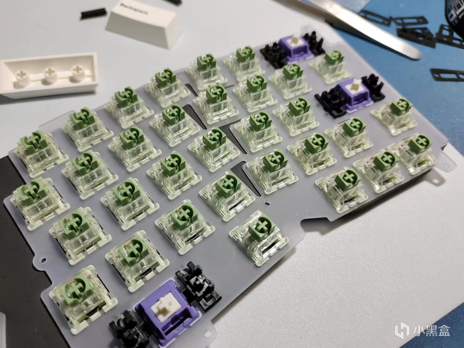 這時候這個鍵盤第一個坑就出來了,這樣之後直接放定位板裝衛星軸的話,大鍵手感會巨肉巨差,因爲夾心棉沒搞好。