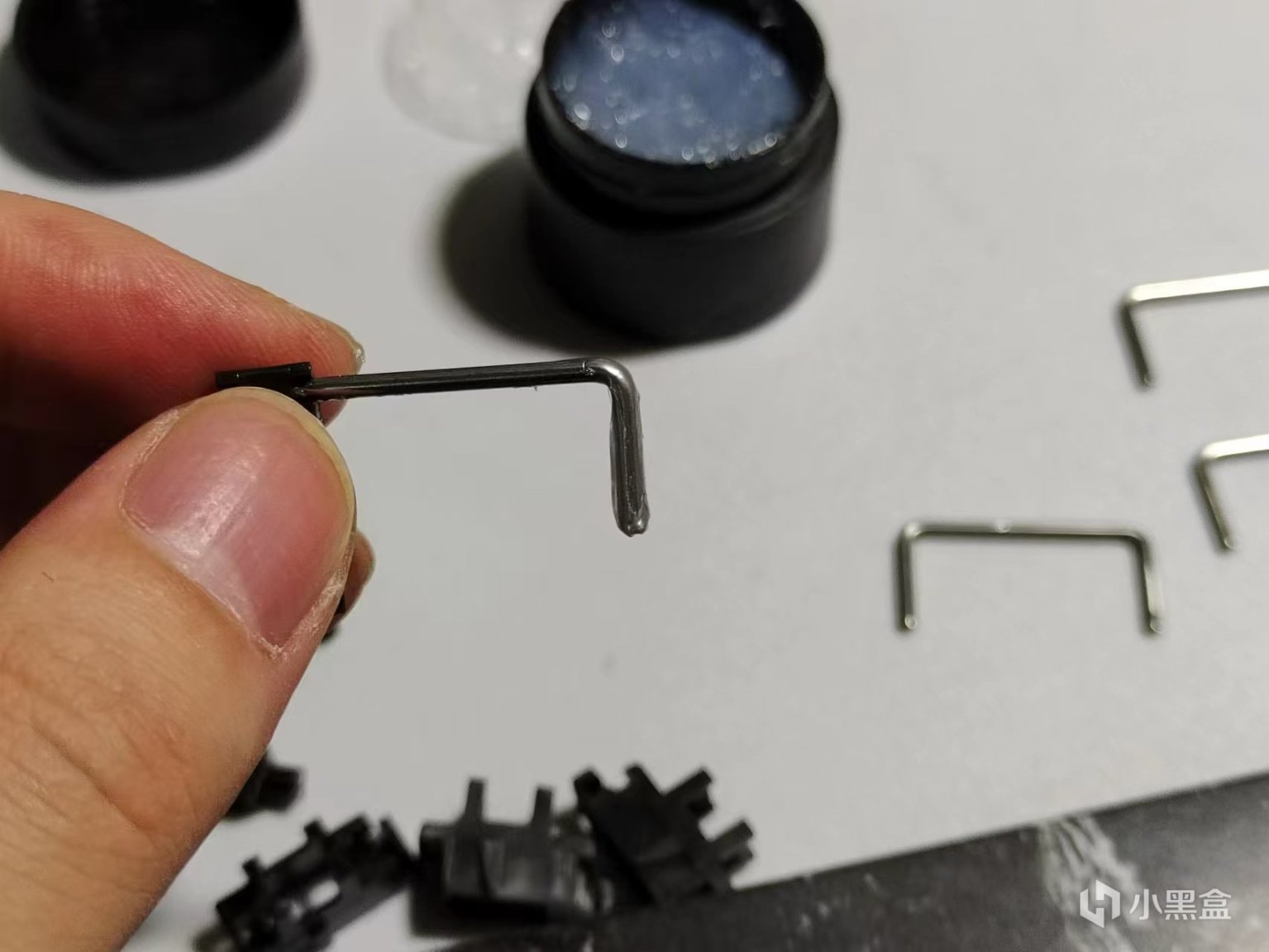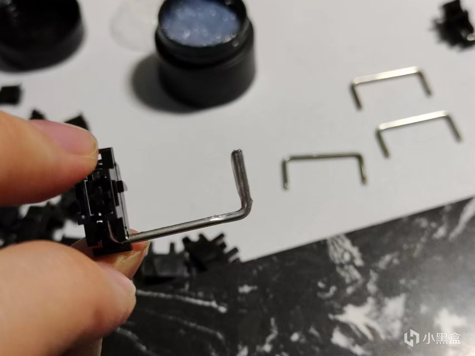 首先拿到鋼絲,將鋼絲放在平面,自己輕點鋼絲兩端檢查是否是直的,如果鋼絲不直很容易造成按鍵鋼絲音。不過2u鋼絲較短比起6.5或7u的鋼絲要好很多。