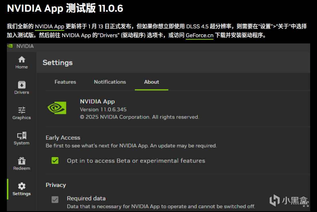 除了新的 DLSS 4.5 超分辨率优设外,NVIDIA App 11.0.6 测试版还包含一些新特性。