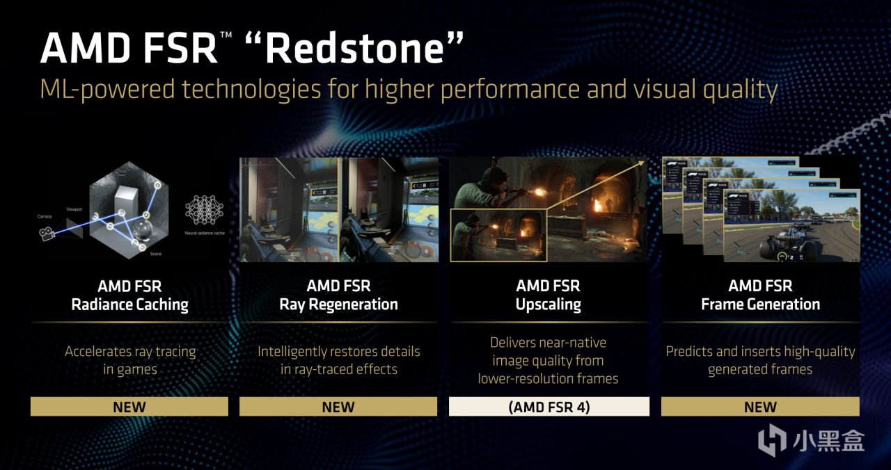 显卡方面则针对现有的Radeon RX 9000系列显卡——搭载全新FSR Redstone技术,拥有四大核心功能——FSR辐射度缓存、FSR光线再生、FSR超分辨率提升(前身FSR 4)和FSR帧生成,均是基于机器学习驱动,分别作用于提升光追渲染效率、利用AI降噪器修复画面、大幅提升画质和有效减少新生帧伪影,为玩家带来由AI全面性优化的出色游戏体验。