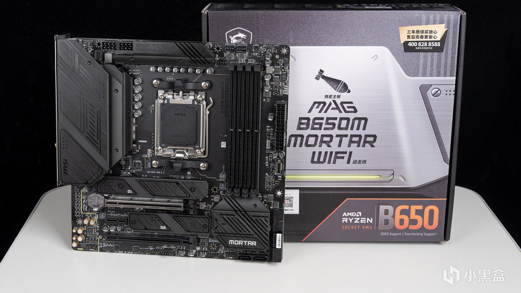 主板是微星MAG B650M MORTAR WIFI迫擊炮,採用12+1+2路豪華供電,其中CPU VCORE每相MOSFET可以達到80A,支持兩組M.2插槽可安裝PCIe 4.0固態,是一款各方面都均衡的千元主流級主板。