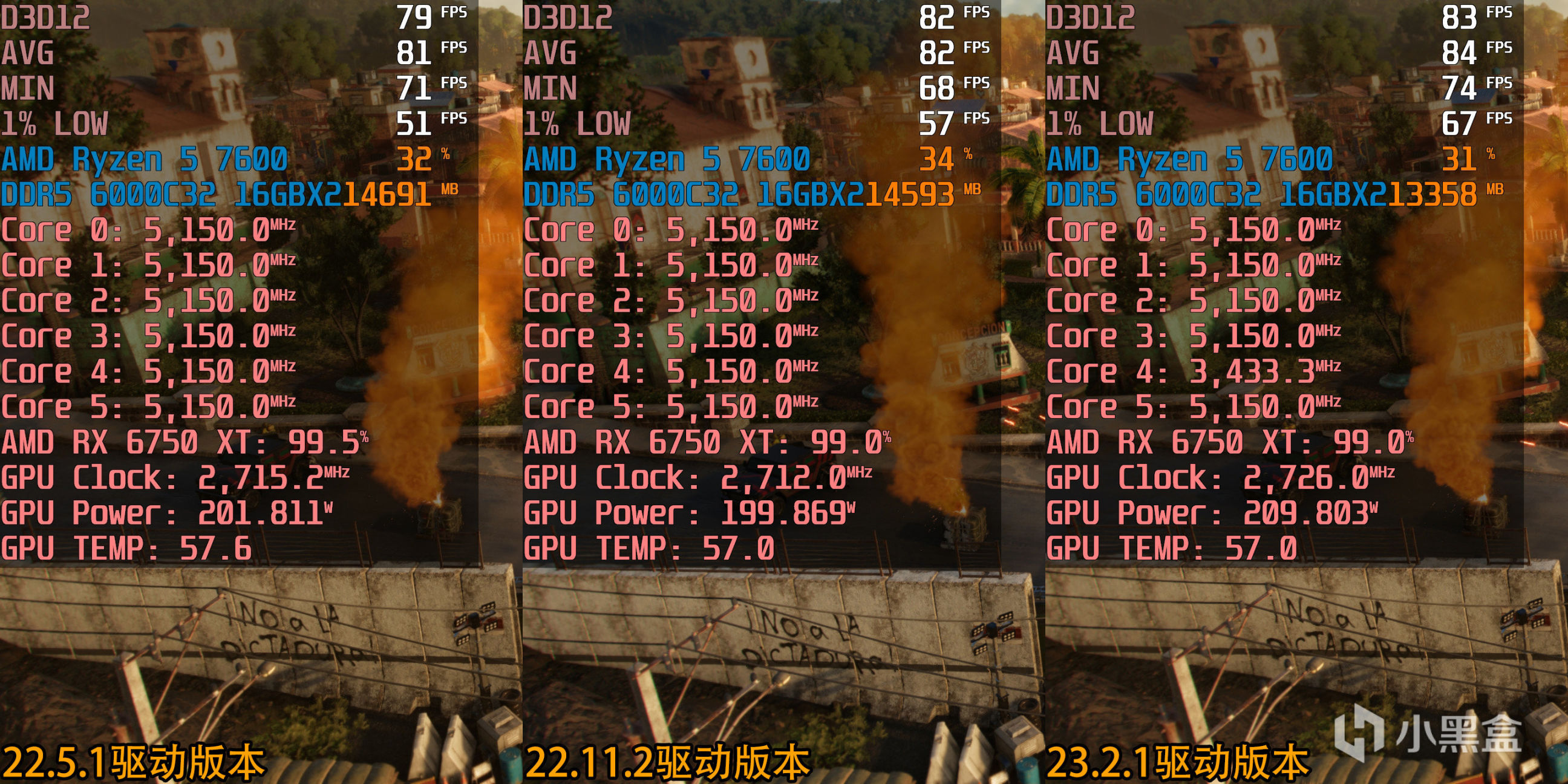 從OSD截圖來看,RX 6750 XT的運行情況基本是一致的,包括佔用率和核心頻率等,所以驅動更新和遊戲後續優化是比較關鍵的。另外以上所說的提升只是平均幀數,其實驅動的更新1% Low幀數也在相應提升的,像在《孤島驚魂6》裏面最大就有30%左右的巨幅提升,1% Low幀數越高遊戲的卡頓感也會相應減少的。