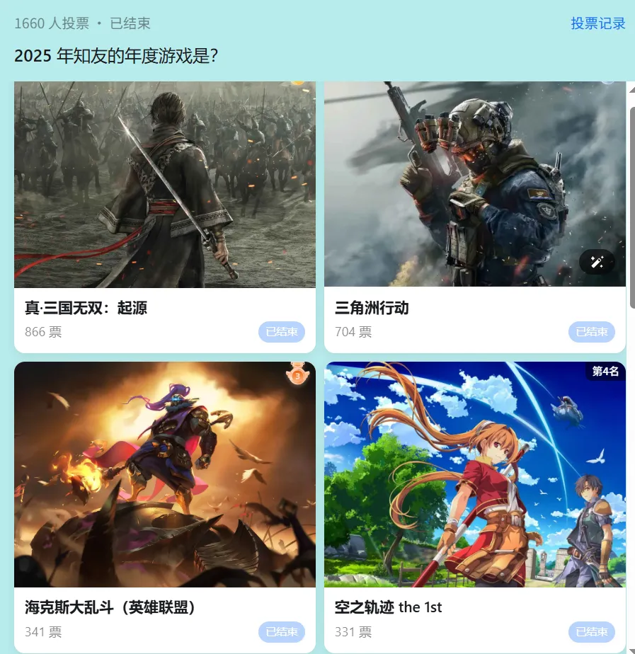 或者说,正是这些丰富的回答,和这个与众不同的年度游戏投票结果,才让我觉得,知乎的这场活动很有“活人感”。这种活人感不是随波逐流地认可官方的观点,而是每个人都有自己鲜明的个性,有自己独特的审美与爱好,能以玩家的态度得出属于自己的心得体会。
