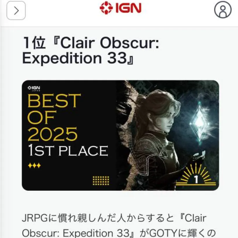 这结果与TGA2025里33拿下年度游戏,狂扫9大奖项,成为西方语境下历史最强游戏的结局不谋而合——既为法国游戏正名,又为日本JRPG品类正名,这下Win-win完了。